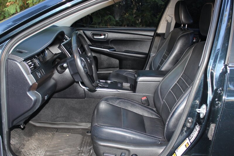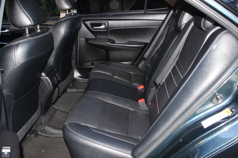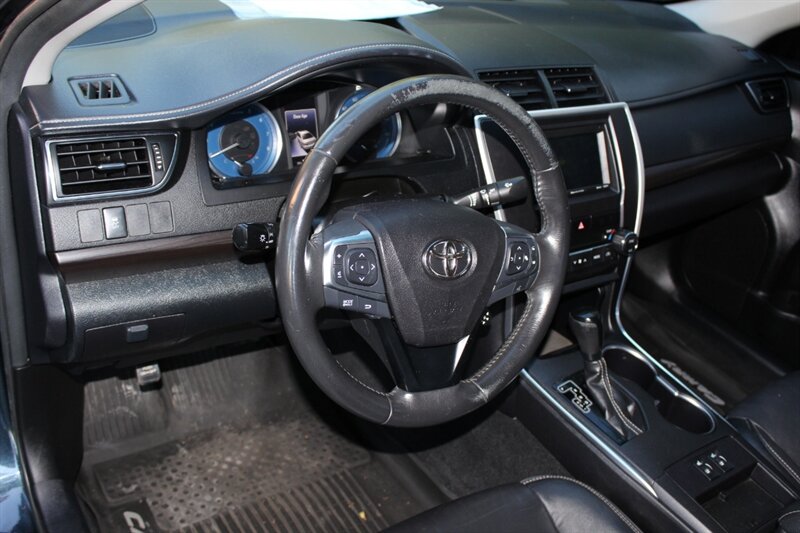 Discover the exceptional 2017 Toyota Camry XLE, a perfect blend of style and performance. Dressed in a striking Blue Streak Metallic exterior, this sedan features a refined Black interior enhanced with eye-catching red stitching. Powered by a robust 2.5L engine, it delivers an impressive fuel efficiency of 24 MPG in the city and 33 MPG on the highway, making it an ideal choice for both urban commuting and long journeys. The XLE trim comes well-equipped with a range of premium features, including a leather-trimmed interior, an advanced infotainment system with a 7-inch touchscreen display, Bluetooth connectivity, and a powerful 6-speaker audio system. Safety is paramount, with standard features such as Toyota’s Safety Sense suite, which includes pre-collision warning, lane departure alert, and adaptive cruise control. Additional conveniences include dual-zone automatic climate control, a power-adjustable driver's seat, and keyless entry with push-button start. This vehicle is in very good overall condition and has been meticulously detailed. With a clean CARFAX report, you can drive with confidence knowing this Camry XLE has been well-maintained and is ready for its next adventure.