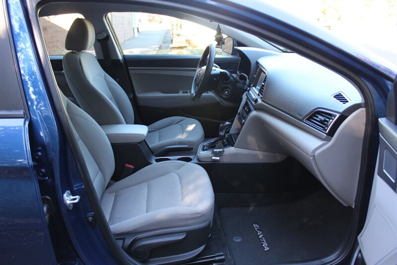 Introducing the 2018 Hyundai Elantra SE, a stylish and efficient compact sedan finished in a striking Electric Blue exterior with a refined Gray interior. Powered by a responsive Nu 2.0L engine, this vehicle delivers an impressive fuel economy of 29 MPG in the city and 38 MPG on the highway, making it an excellent choice for both daily commutes and long drives. The Elantra SE comes equipped with a suite of factory-default features designed for comfort and convenience. Enjoy a user-friendly 7-inch touchscreen display with Apple CarPlay and Android Auto compatibility, allowing seamless integration with your smartphone. Additional features include a rearview camera for enhanced safety, Bluetooth connectivity for hands-free calling, and a six-speaker audio system for an enjoyable listening experience. This vehicle is in very good overall condition, having been meticulously detailed and boasting a clean CARFAX report. Experience the perfect blend of style, performance, and reliability with the 2018 Hyundai Elantra SE.